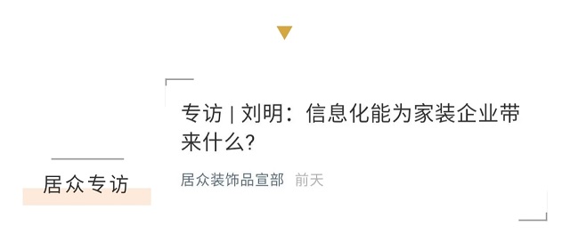 前天,居眾裝飾品宣部發了一篇標題為“信息化能為家裝企業帶來什么”的專訪。