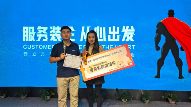 最后頒發最重量級的一個獎項,感恩這位行業前輩,在自己不熟悉信息化的前提下,堅定的選擇了云立方,按他的說法來講,就是“感覺對了,支持小年青”。