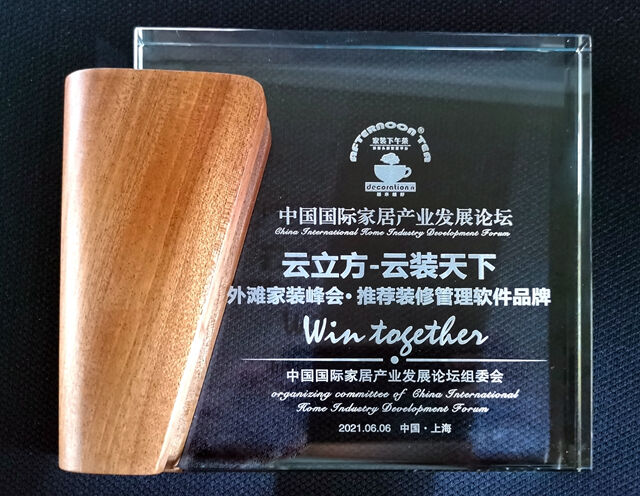 會上,云立方榮獲「外灘家裝峰會·推薦裝修管理軟件品牌」。