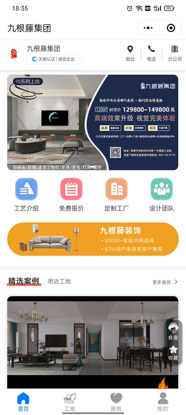 2、通過九根藤自有的品牌屬性,與客戶達成簽約,同時通過云立方-云裝天下ERP,來解決內部協調和客戶之間的關系,實時同步給客戶每天施工內容,客戶可以直接查看自己施工過程。