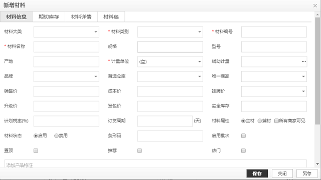 裝企在系統里的“材料寶典”錄入標準模式,包括材料大類、材料類別、材料編號、材料名稱等,材料員發起申購單時,可以直接選擇所需的材料,按需下定。如果遇到特別的材料,系統也支持自定義。