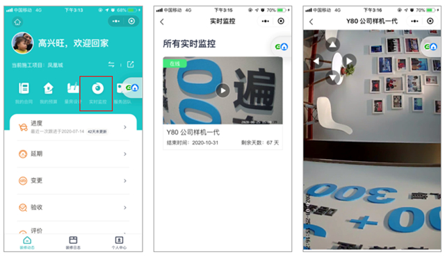讓業主隨時在線跟蹤新家裝修進展,更直觀清晰的了解工地,現場、施工工藝、巡檢驗收細節、產品進場安裝情況等。免去舟車勞頓煩惱,省時省力更省心;
