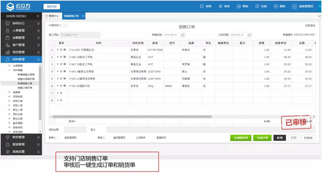 亮點1:內置完整的進銷存系統,極大提高材料部門工作效率