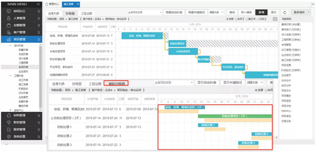 亮點2:施工計劃進度甘特圖,可自定義項目施工進度模板(整裝、二手房、商裝、暖通項目模板等)