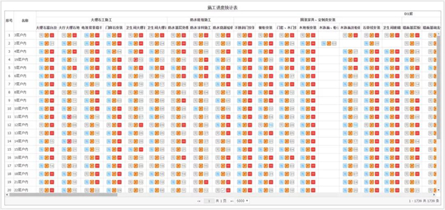 亮點10:批量精裝項目管理進度大屏展示(可按樓棟層及水電泥木油、安裝等大類節點)