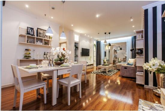 來到“一號作品”現代簡約樣板房,里面很多設計要素靈感來自于北歐、新加坡等主流居室設計潮流,黑與白的巧妙平衡彰顯出理性干練的的空間氣質。工作人員介紹說,80平米的1號樣板房一價全包,包硬裝、軟裝、家具、燈具、電器、床上用品。目前主流的樣板房共有4套,分別是一號作品現代簡約、二號作品時尚都市、三號作品法式經典和四號作品美式休閑。而四套作品的價格區間從97225到213902不等?!拔覀冞@里的爆款是80平米97000多元的樣板房,銷售量過億。